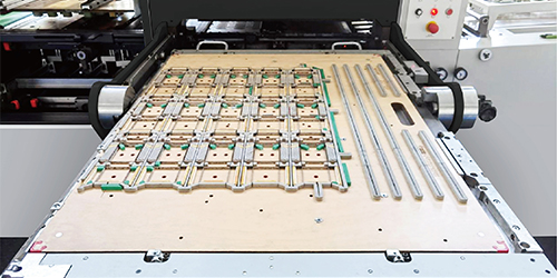 | 05、中間清廢板的安裝采用中心線快速定位安裝方式,快速安裝清廢板,上、下框運行,而中框不運行,少打連點,不易散板 | 〇 |