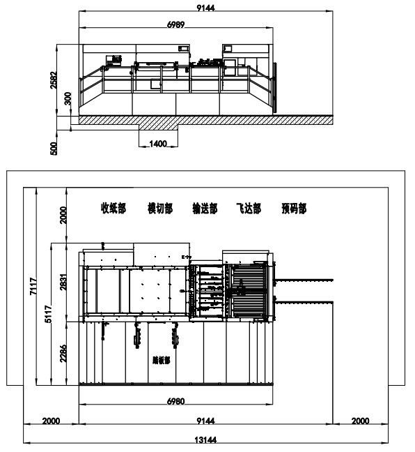 | 整機尺寸 | 6440×4256×2350mm (長含預上紙軌道;寬含腳踏板) | 8276×4506×2467mm (長含預上紙軌道;寬含腳踏板) | 8033×4688×2435mm (長含預上紙軌道;寬含腳踏板) | 8546×4706×2452mm (長含預上紙軌道;寬含腳踏板) | 9144×5117×2582mm (長含預上紙軌道;寬含腳踏板) |