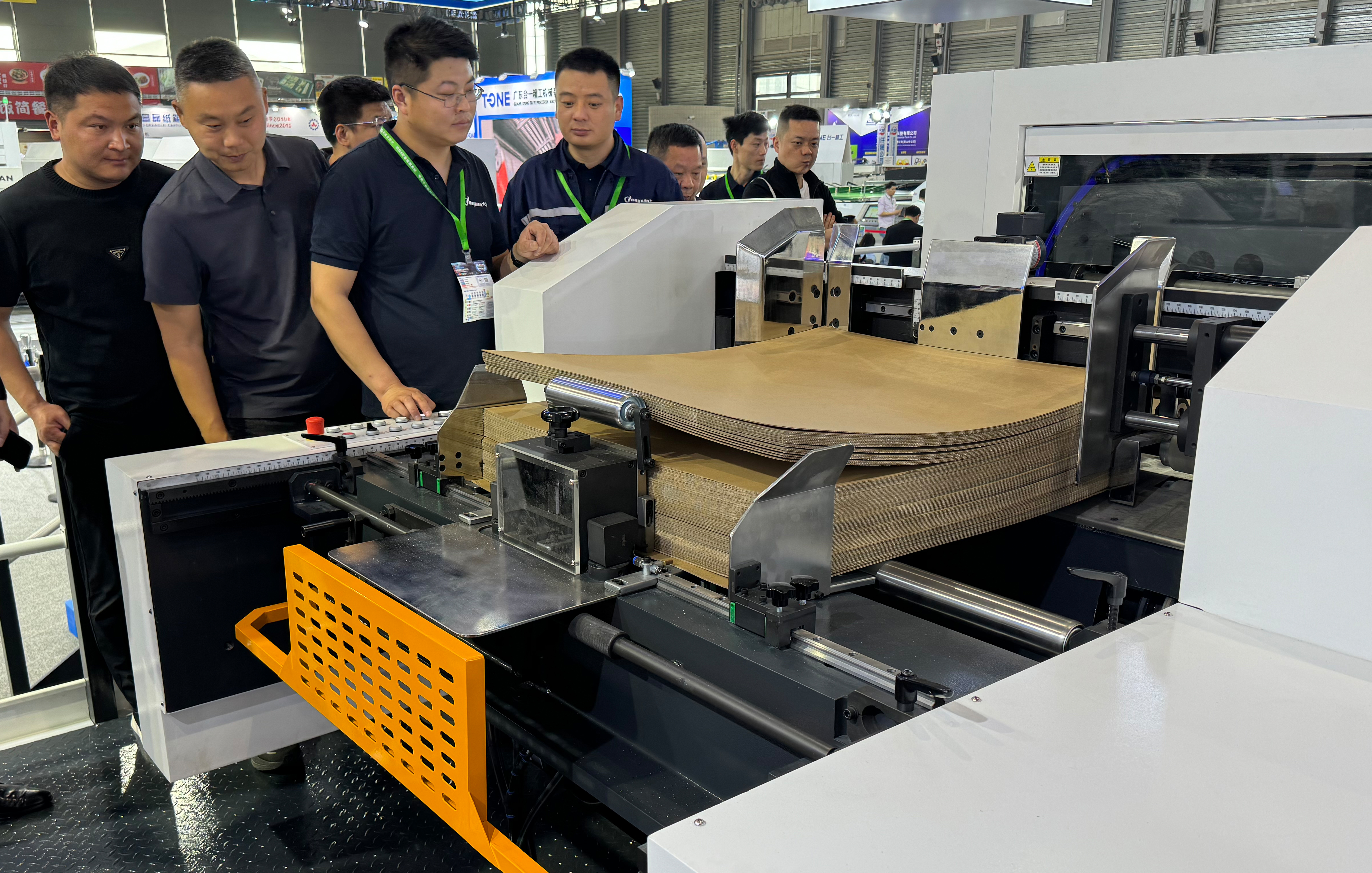 ? ? ? ? 在為期五天的展會現場,大源共展出了4臺全新升級的設備,包括MHK-3S1050TTRC多機組叁工位高速自動雙燙金熱壓清廢模切機(全球首發)、MHK-1650FC全自動帶清廢平壓平模切機聯動生產線、SMC-1500ZH自動接紙不停機換托盤雙螺旋卷筒紙分切機、BHT-1060SCE全自動平壓平模切全清廢分品機等。
