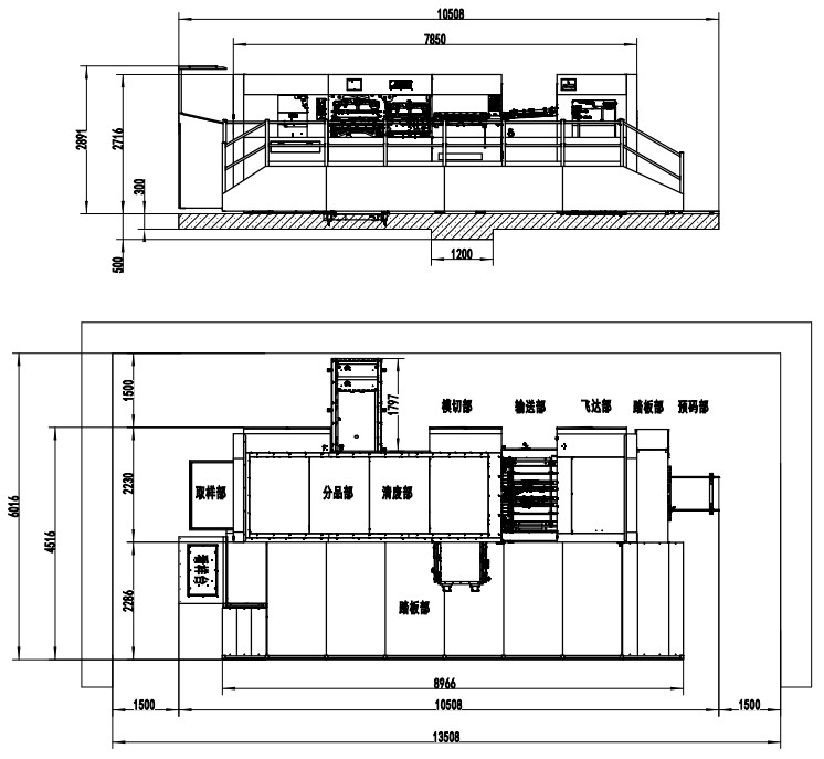 | Machine Dimensions | 10508×6016×2891mm (L×W×H)(L: paper prepared track included, W: platform included) |
