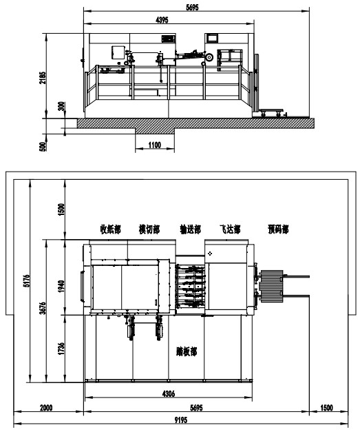 | Machine Dimensions | 5695×3676×2185mm(L×W×H) (L: paper prepared track included, W: platform included) |