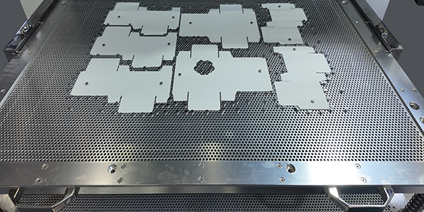 ? No mold changes are required for different product sizes. The honeycomb plate frame and positioning pins adapt to various box shapes. Lower pins support the product area while upper pins press the waste area for clean and efficient stripping.