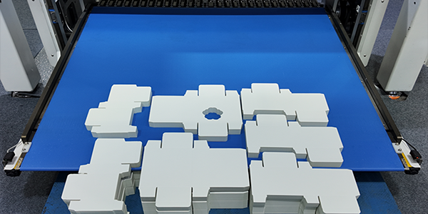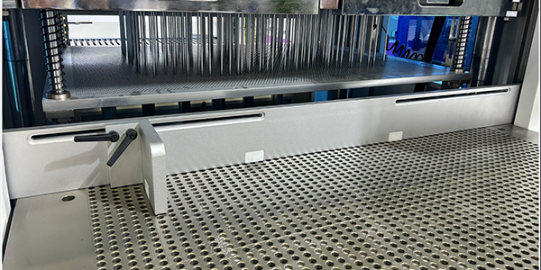 This machine is equipped with a high-performance waste removal system featuring dual functions: row stripping and full sheet stripping. It can complete one-pass full waste removal for various box types, window holes, aircraft holes, and front/back stitching waste edges, as long as products fall within the machine’s working size range.