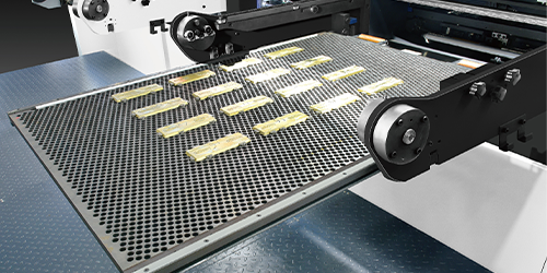 The sampling function allows one-button removal of sample sheets on-the-fly, enabling effortless operation without stopping production.