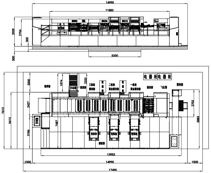 | Machine Dimensions(Including Die Preloader) | 14995×7613×2909mm(L×W×H) (L: paper prepared track included, W: platform included) |