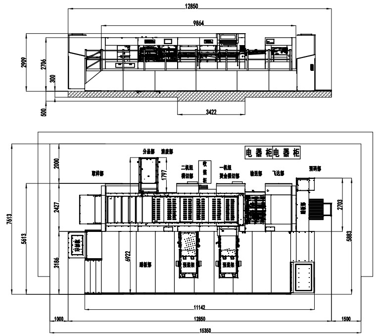 | Machine Dimensions (Including Die Preloader) | 12850×7613×2909mm(L×W×H) (L: paper prepared track included, W: platform included) |