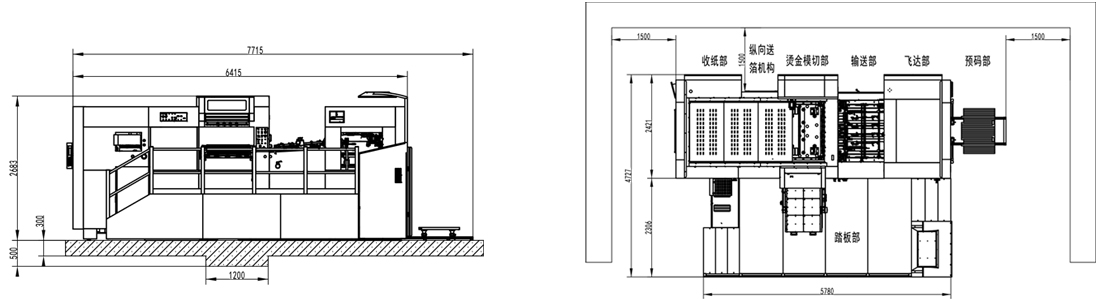 | Machine Dimensions(Including Die Preloader) | 7715×5627×2683mm(L×W×H) (L: paper prepared track included, W: platform included) |