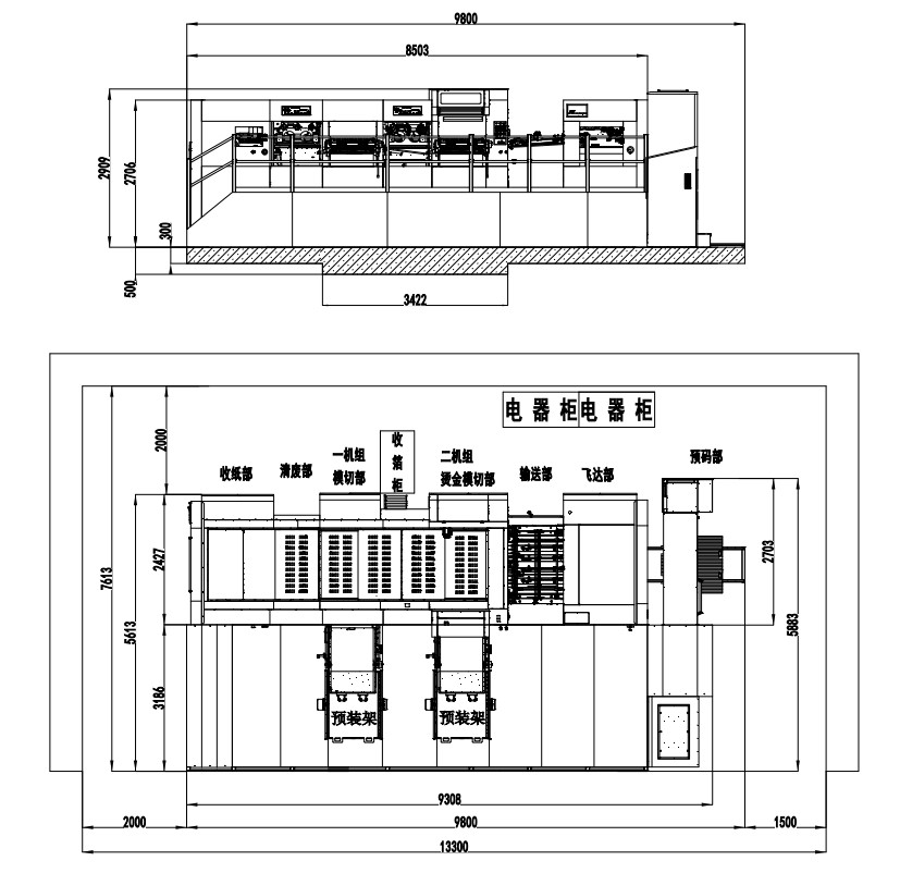 | Machine Dimensions (Including Die Preloader) | 9800×7613×2909mm(L×W×H) (L: paper prepared track included, W: platform included) |