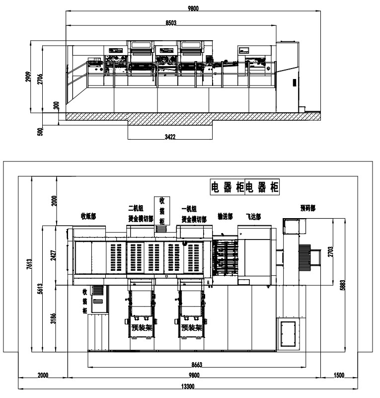 | Machine Dimensions (Including Die Preloader) | 9800×7613×2909mm(L×W×H) (L: paper prepared track included, W: platform included) |
