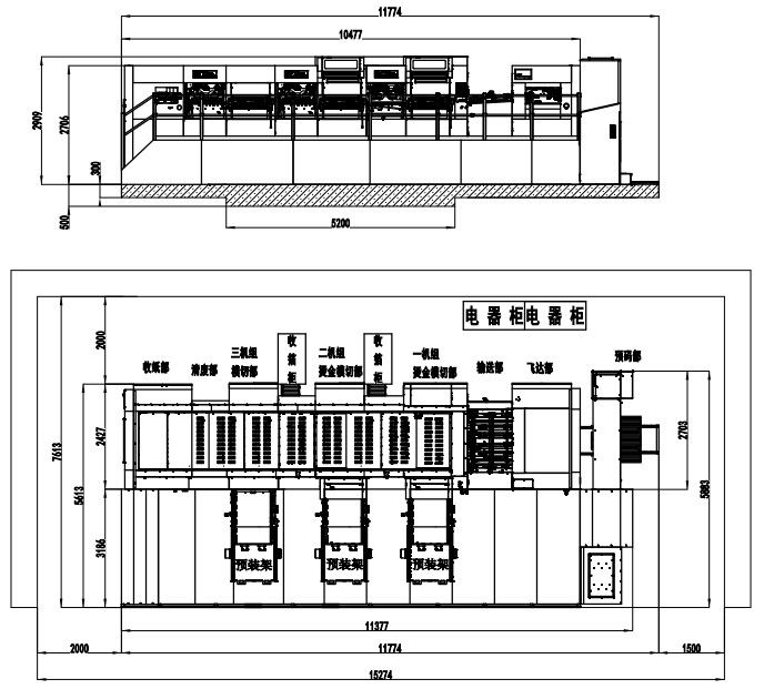 | Machine Dimensions (Including Die Preloader) | 11774×7613×2909mm(L×W×H) (L: paper prepared track included, W: platform included) |