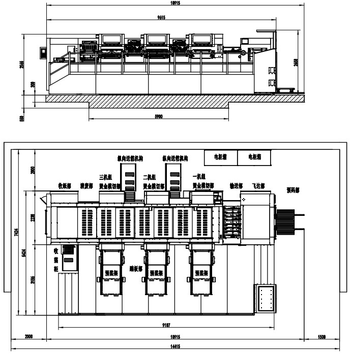 | Machine Dimensions(Including Die Preloader) | 10915×7424×2658mm(L×W×H) (L: paper prepared track included, W: platform included) |