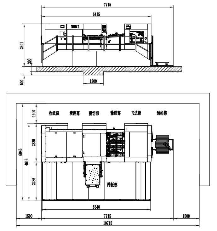 | Machine Dimensions (Including Die Preloader) | 7715×5516×2301mm(L×W×H) (L: paper prepared track included, W: platform included) |
