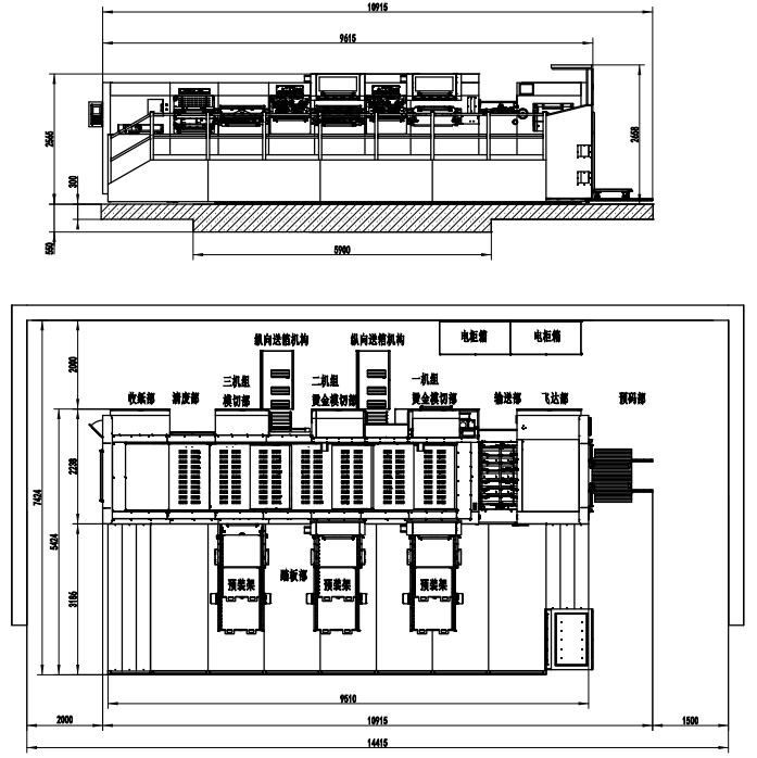 | Machine Dimensions(Including Die Preloader) | 10915×7424×2658mm(L×W×H) (L: paper prepared track included, W: platform included) |
