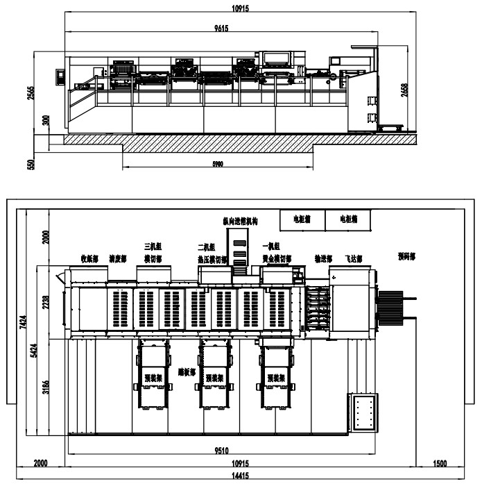 | Machine Dimensions(Including Die Preloader) | 10915×7424×2658mm(L×W×H) (L: paper prepared track included, W: platform included) |