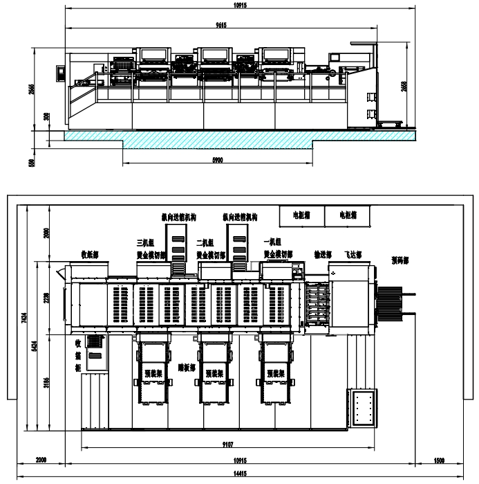 | Machine Dimensions(Including Die Preloader) | 10915×7424×2658mm(L×W×H) (L: paper prepared track included, W: platform included) |
