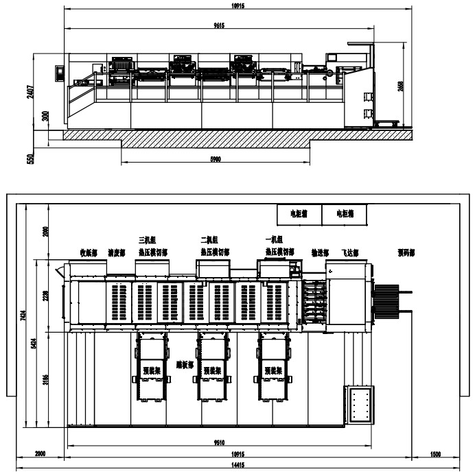 | Machine Dimensions(Including Die Preloader) | 10915×7424×2658mm(L×W×H) (L: paper prepared track included, W: platform included) |