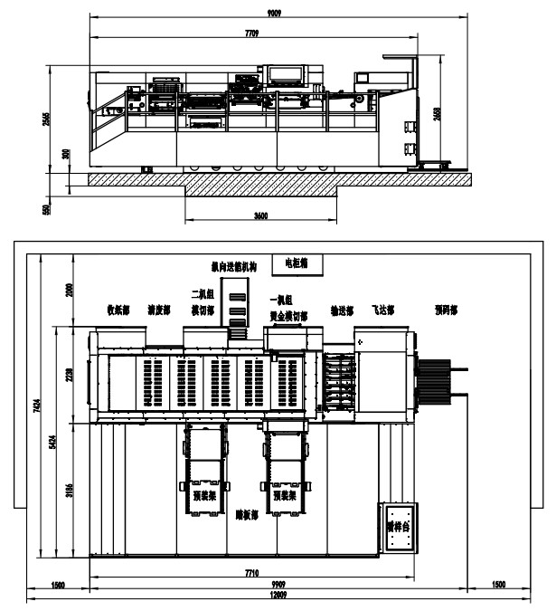 | Machine Dimensions(Including Die Preloader) | 9009×7424×2658mm (L×W×H) (L: paper prepared track included, W: platform included) |